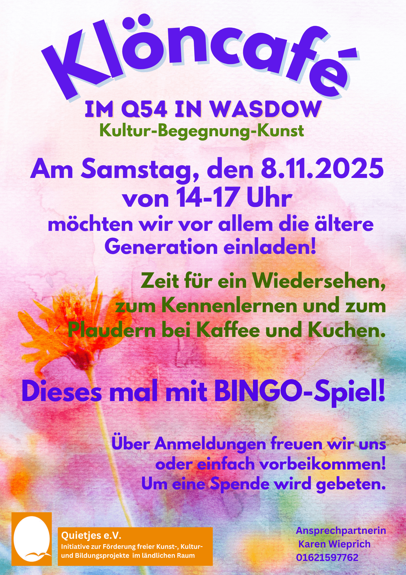 | Samstag jeden 2. Monat | Klöncafé für die ältere Generation im Q54 in Wasdow |