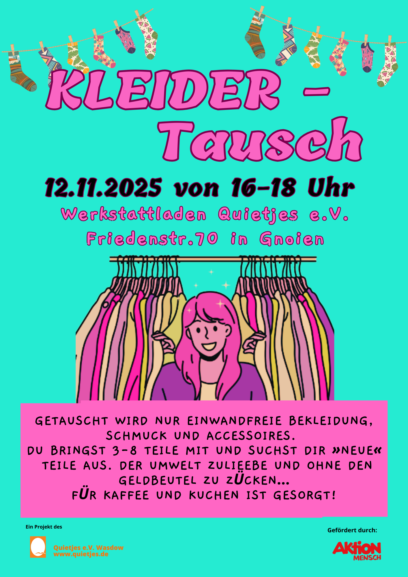 | Dienstag 9-11 Uhr | Spielcafè- Frauenfrühstück im Werkstattladen in Gnoien |