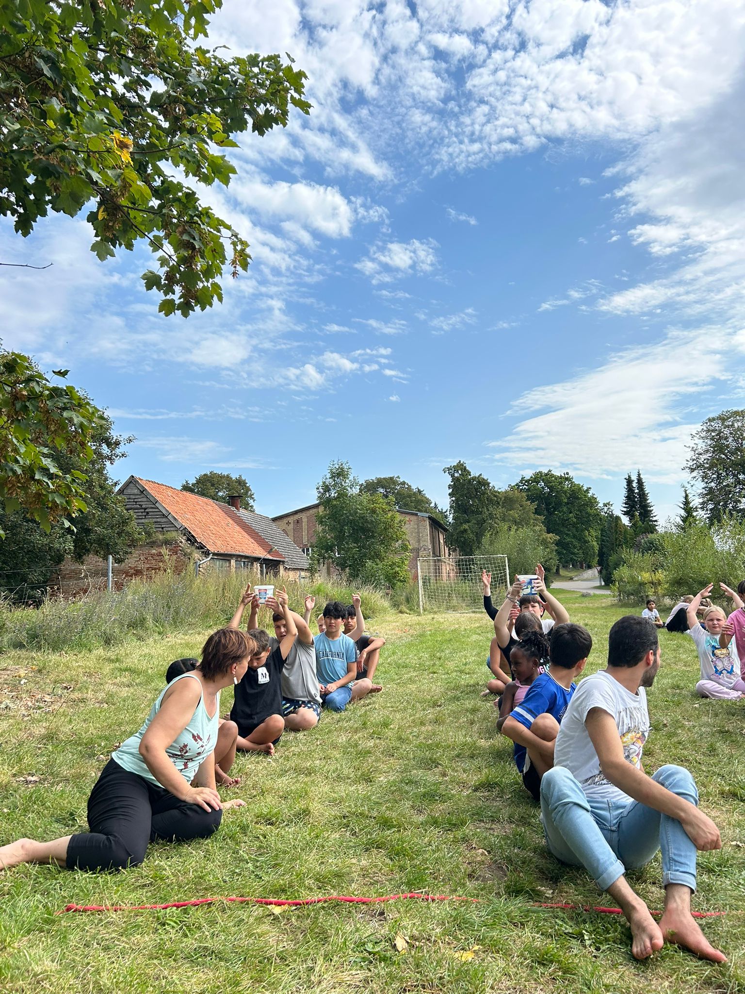 Im Wald, auf der Wiese oder in den Räumen des Q54 Wasdow gingen wir auf Exkursionen, experimentierten, waren kreativ, spielten und hatten eine schöne Zeit miteinander. Das Kinderecht auf eine gesunde Umwelt wurde in den Kreativ-Workshops wie mit Schafwolle filzen, Papier schöpfen, upcycling mit T-Shirts, Knatterboote bauen, Traumfänger aus Weiden basteln oder Natur-Bingo beleuchtet und diskutiert.